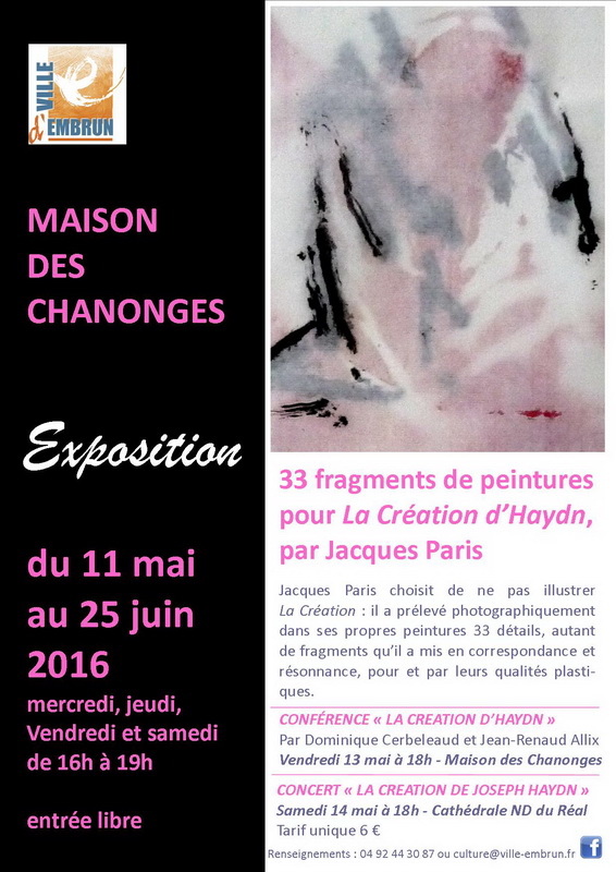 L'association de Sauvegarde et d’Études du Patrimoine de l'Embrunais reprend sa collaboration avec le service culturel de la ville d'Embrun en ce qui concerne la tenue des expositions à la Maison des Chanonges, à partir du 11 mai 2016.